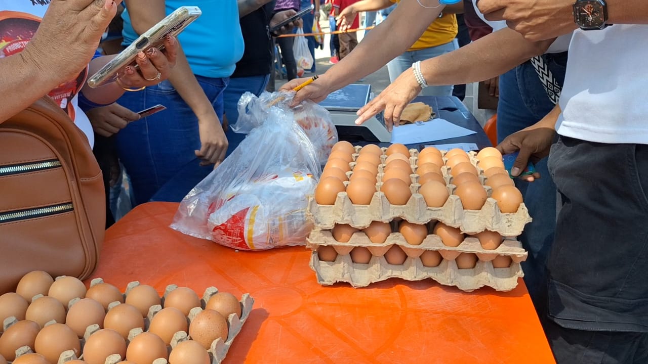 Los productos entregados en las jornadas incluyen proteínas clave como huevos, pollo y pescado, además de verduras, hortalizas y víveres esenciales.