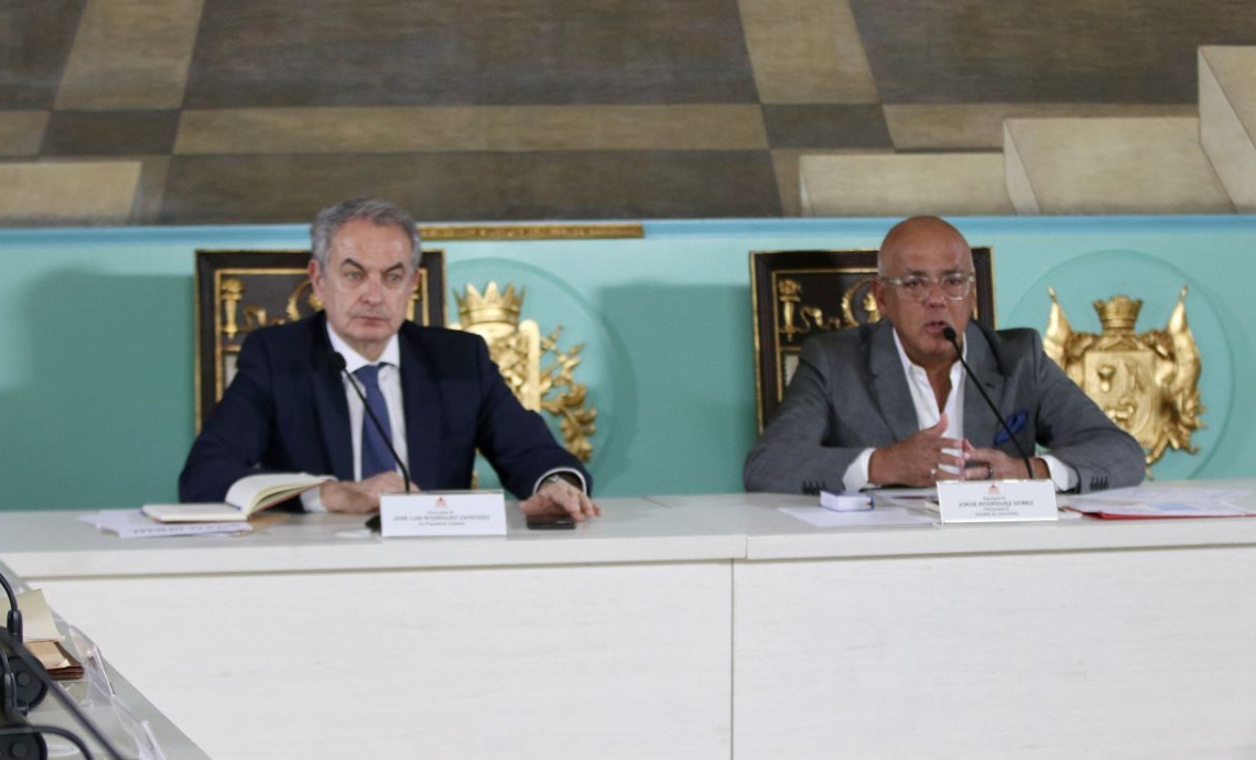 Jorge Rodríguez abundó en elogios hacia Zapatero, llamándolo “amigo y mentor”, “especialista” en amnistía, paz, diálogo “y en Venezuela”.